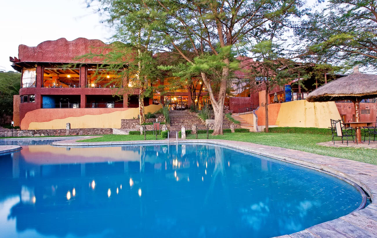 Later in the afternoon, guests return to Serengeti Sopa Lodge. The lodge provides a peaceful place to rest after the exciting drive. Visitors may enjoy the swimming pool or relax on the terrace.